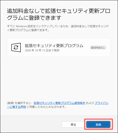 ESU(拡張セキュリティ更新プログラム)の登録方法