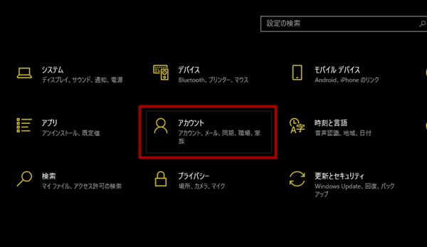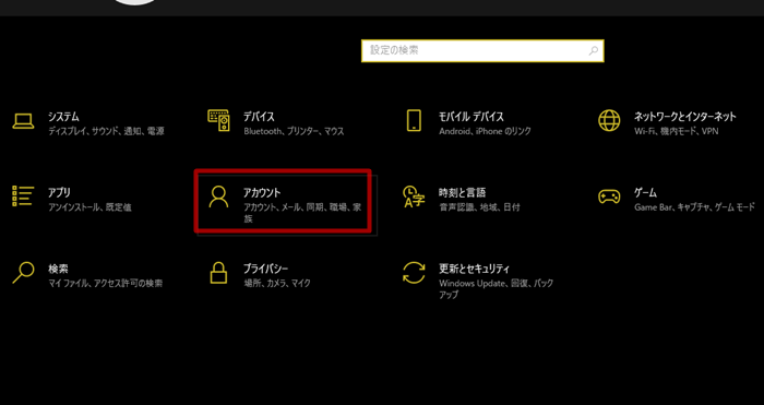 次に「アカウント」をクリック。