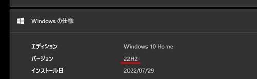 - Windows 10のバージョンが「バージョン 22H2」になっている