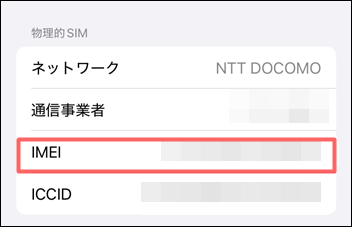 ここで、先ほどスクショ、またはメモに控えていた製造番号(IMEI)を入力。