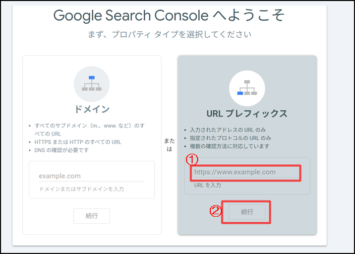 プロパティタイプは、URL プレフィックスの方がアナリティクスの登録がスムーズに進みます。